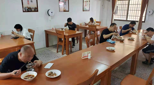 (机关大院门口值班值守) 8月1日,午饭开餐之前,办公室刘志孝同志不停忙碌开来,负责将食堂的桌椅板凳按间距排开,通知中心全体干职工须按照楼层区分就餐时段,提倡错峰用餐、分散就餐,就餐时注意安全防护距离确保安全就餐。