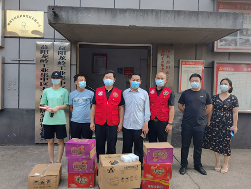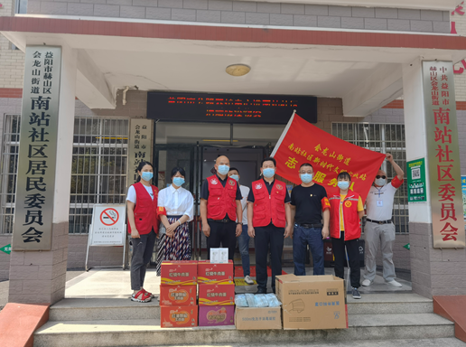 (疫情防控志愿服务活动部署会议) 8月4日下午,中心党委书记、主任杨正才和党委委员、副主任姚雪华一行前往赫山区会龙山街道南站社区、龙岭工业园天子坟社区看望慰问社区疫情防控工作人员,向他们赠送了口罩、体温枪、免洗手消毒液和方便面等防疫物资。