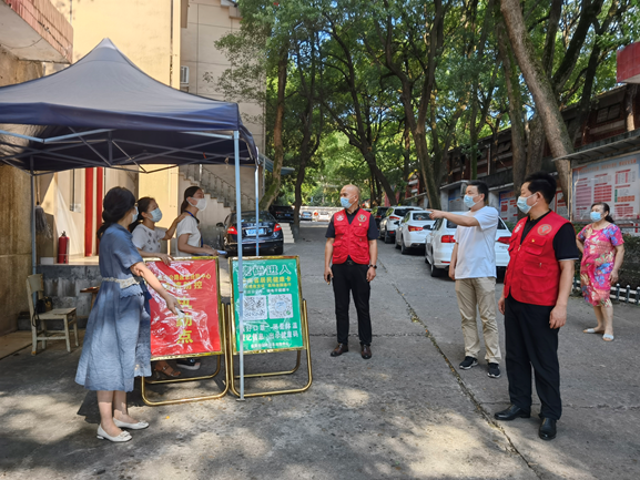 (督导应急抢险中心疫情防控工作) 8月5日一大早,中心副主任姚雪华带领邓伟强、陶家喜、王富、龙军辉四名党员志愿者到达龙岭工业园天子坟社区开展工作。 8月6日,中心增派8名同志支援驻地社区南站社区疫情检疫工作。盛夏时节,高温酷热,志愿者们在核酸检测点帮助社区维持现场秩序,提醒居民保持安全距离、有序排队,帮助老人们提前扫码预约检测,他们顶着酷暑,带着爱与责任冲在保护人民群众生命健康的第一线。