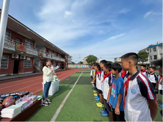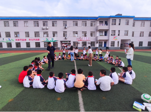 一、知识竞答 为确保青少年在成长过程中实现身心健康,提高体育健身素质和自我保护能力,选调生与腰铺子学校足球队队员围坐一圈,以知识竞答的方式普及体育运动的相关知识,此外还包括防溺水、禁毒、防性侵等方面的知识,让孩子们在趣味中学习。 骄阳似火,但孩子们的热情不敌炎炎夏日半点。“我我我知道”“姐姐我举手了”大家积极融入、踊跃作答。对于答对的同学,选调生们分发相应的奖品,为提高学生们的积极性,选调生们在竞答环节会留意到比较内向的孩子,鼓励他们作答,并给予适当帮助,让所有孩子都能有所收获,有所成长。