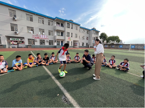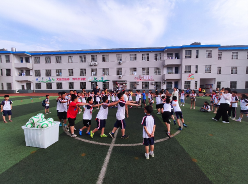 “少年强则国强”,青少年的体质健康水平不仅关系个人健康成长和幸福生活,而且关系整个民族健康素质,关系我国人才培养的质量。但是对于不少乡村学校来说,体育器材短缺、体育健身氛围不足等问题困扰着儿童们的体育成长。 作为扎根基层且有着青春活力的群体,选调生们以期通过自己和群体的力量,对接相关社会资源,让青少年在增长知识、培养品德的同时,也不忘锻炼和发展身体的各项素质和能力,成为为中国特色社会主义事业的合格建设者和接班人。 在益阳市赫山区委组织部、腰铺子学校的支持下,由2021届益阳市选调生发起的“湘心陪伴·益路同行”公益教育活动在2022年夏初迎来了第四期。这一次,益阳市赫山区2021届选调生走进龙光桥街道腰铺子学校,走进足球队,以哥哥姐姐们的身份带领小学生们走出教室、走向操场、走到阳光下,以“知识竞答、游戏互动、足球展示”的方式让孩子们挥洒汗水、强健体魄、身心充盈,通过“益”起努力,助力基层教育。