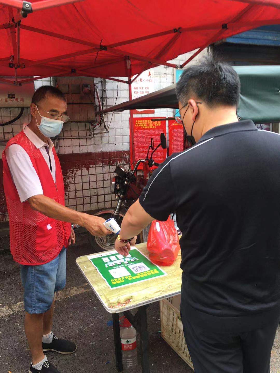 “面对这场没有硝烟的战争,我作为一名退伍老兵,有义务也有责任守护我们的家园,为打赢这场疫情阻击战贡献自己的力量。”从8月1日开始,这位年过花甲的退伍老兵周国庆主动请缨,担任益阳高新区鹿角园农贸市场疫情防控的志愿者。他每天早上6点提前到市场进行场地消毒、卫生清理、体温检测、健康码查验、宣传劝导等工作,这里的商户和买菜的市民都亲切的叫他“老革命”。 无独有偶,“老革命”的精神感染了社区和市场,陆续有更多的人员加入到了志愿者的队伍中。“在电视里面看到防疫救灾的感人场景,内心深深的感叹党和国家的强大,更感谢为我们的幸福生活而默默付出的人们。我们作为青年一代、强国一代,面对疫情,也自然要挺身而出。”刘聪是一名大三的学生,也是一名入党积极分子,铿锵有力的表明了自己参加志愿者的初衷。他顶着炎炎烈日,身上的衣服干了又湿,在市场大门口逐一查验健康码、测量体温,面对偶尔极个别不配合人员,进行耐心的劝导。 从退伍老兵到大学学生,从志愿者到基层工作人员,从退休人员到在职干部,从人民警察到医务工作者...他们聚是一团火,散是满天星,在自己的岗位上与疫情展开英勇搏斗,构筑起疫情防控的铜墙铁壁。 鹿角园农贸市场的疫情防控场景只是整个益阳高新区农贸市场防控的一个缩影。笔者了解到,益阳高新区有鹿角园、江金、玉鹿、学府四个大型农贸市场处在城区繁华的地区,服务半径大、服务人口多、人流量密集,面对疫情防控形势的吃紧,全区上下高度重视、主动作为,为兼顾保障人民群众的基本生活以及疫情防控需要,充分发挥党员、老兵、学生等群体的力量,明确市场专门巡查人员每天进行巡查,发现问题及时处置,并建立了“三七”管控制度,即各大门店商户,不按要求采取防疫措施,先由市场管理人员责令停业整顿三天,市场管理人员整顿不到位的,再由经济合作局联合市监、城管等执法部门勒令整顿七天,促进了疫情防控工作的有效开展。 |