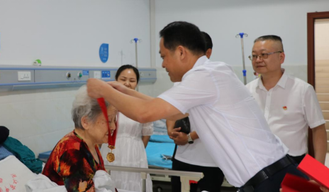青丝变白发,不变的是爱党敬党的初心,坚守的是忠党信党的赤诚,佩戴上纪念章,老党员们激动万分、满怀自豪。老党员代表夏纯利表示今天是近30年来最高兴的一天、最激动的一天,获得奖章感到无比自豪,这是一份沉甸甸的荣光,更是一份宝贵的精神财富…… 党员文佑先同志因身体原因无法参加本次颁奖活动,院党委书记带领班子将纪念章和鲜花送到病房中,并对其表示慰问。