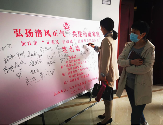 活动现场,与会人员在签名墙上郑重签下自己的名字,承诺做“清廉家庭”的引导者、守护者和建设者。