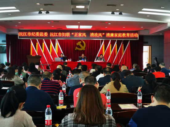 为深入贯彻习近平总书记关于注重家庭家教家风建设重要论述,号召全市广大党员干部坚守道德高线,拉紧纪律红线,树立清风正气,营造健康向善的廉洁家庭氛围,11月2日下午,沅江市纪委监委、沅江市妇联联合开展“正家风 清政风”清廉家庭教育活动。全市纪检监察系统干部、各镇(中心)街道妇联主席、各市直单位妇委会主任共130余人参加活动。