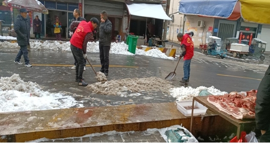 学习结束后,部分村(社区)发动党员志愿者开展扫雪除冰行动,消除道路安全隐患,践行为群众办实事的宗旨,方便群众出行。 |