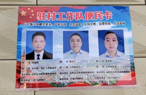 为扎实开展乡村振兴各项工作,真正实现零距离服务群众,沅江市共华镇紫红洲村驻村工作队将驻村干部的照片、姓名、联系电话、工作职责等内容印制成进村入户的“便民服务卡”。在入户走访中将卡片逐一张贴至各家各户,村民有事拨打卡片上的联系电话,工作队就会及时来解决问题。“便民服务卡”让紫红洲村群众足不出户联系驻村工作队,搭建起了驻村干部与群众沟通的“连心桥”。