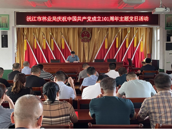 7月1日上午,沅江市林业局机关党委在局机关四楼会议室组织召开庆祝中国共产党建党101周年主题党日活动,全体机关党员、干部职工和二级机构负责人共53人参加会议。
