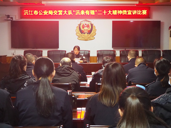 为深入学习贯彻党的二十大精神,市交警大队举办“‘沅来有理’ 二十大精神我来谈”微宣讲比赛。通过个人报名,中队、所、中心推荐,9名党员民辅警参加比赛。