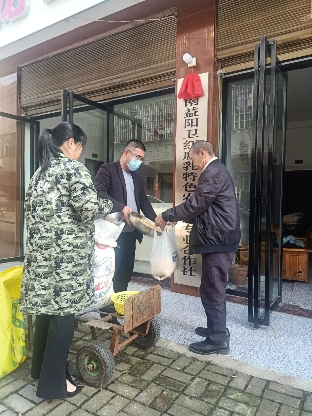 由于夫妻二人待客热情诚信,很快豆腐店打响了口碑,不仅是村里镇里来买,连湘阴县都有很多熟客。经营过程中,龙卫红发现豆制品太过单一,便自己开始研发制作腐乳,带头创办龙卫红腐乳特色农产品专业合作社,于2000年创立了自己的品牌“龙卫红腐乳”。 从小小几十平米的车间发展到现在550平米的厂房,拥有自己的独立品牌和商标,离不开他们的勇于探索,勇于尝试。龙卫红妻子说:“我们一开始制作腐乳,做得不好吃的,自然发霉不好的,都不知道倒掉多少,偷偷的倒掉,生怕别人看到。” 心系乡亲父老 一心争做致富带头人 功夫不负有心人,经过七年时间,“龙卫红腐乳”成为了老百姓心中一道经久不衰的美味佳肴。自己产业做好了,如何发挥好党员作用,带动村民们一同致富?龙卫红开始想起了法子。他利用合作社在当地聘用专业技术从业人员4人,从种植育品到加工生产,亲自教授,并利用空闲时间,带到外地考察学习,并开出7000-8000元每月的工资。 龙卫红还聘用了19名当地困难户,陈双喜就是其中一员。“老陈家境贫苦,自己又身患残疾,我就想着让他帮我酿酒,让他儿子来我这上班。”龙卫红说道。为了让陈双喜可以快速上岗,龙卫红特意请来了技术人员,一步一步教会他如何酿酒、储存,并以每斤高出市场价1元的价格保底收购。陈双喜儿子也实现了从以前外出刮墙漆每月只有3000来元收入,到现在家门口就业月入7000元的跨越,父子俩生活越来越幸福。