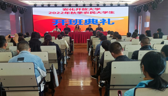 开班典礼 开班典礼上,2020级老学员代表刘俏分享了自己的学习心得,并感谢各级组织给予其成就梦想的舞台,2022级新学员代表邓小敏表示一定珍惜这次学习机会,克服困难、勤奋学习、遵守纪律,多学知识、多长技能,为农村经济的发展与社会的进步贡献一份力量。 县委组织部党员教育中心、县教育局教师发展中心相关负责人向2022年秋农民大学生新学员表示祝贺,要求学员要珍惜机会、端正态度、提高本领、学以致用,为安化县乡村振兴事业作出贡献。 益阳开放大学副校长刘燕详细介绍了“农民大学生培养计划”,对安化开放大学抓好“农民大学生培养计划”的管理和服务工作提出了要求和建议,并号召学员们感恩家乡、感恩时代,不负韶华,练就本领,积极带头学习宣传和贯彻落实党的二十大精神,扎实推动乡村振兴,以实际行动助力乡村发展,在建设农业强国进程中贡献力量。
