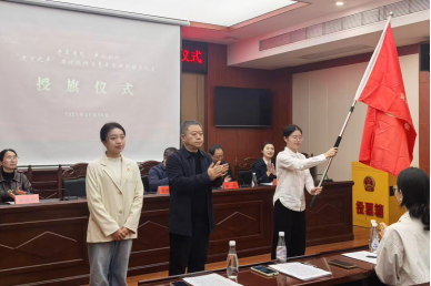 勇立时代潮头,让宣讲彰显担当。县委宣传部相关负责同志为宣讲团授旗,旗帜承载着“理论扎根基层、青春服务人民”的初心使命,将继续指引宣讲团成员传递有信仰、有温度、有定力的时代之声。