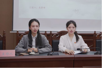 坚持培训赋能,让宣讲再续华章。换届仪式结束后,宣讲团组织开展宣讲培训,为提升“云宣讲”栏目质量,确保宣讲成效可视化,2024届选调生龙馨雨、李芷怡分别就公务拍摄、视频剪辑进行交流分享,为持续扩大宣讲团传播力与影响力注入力量。