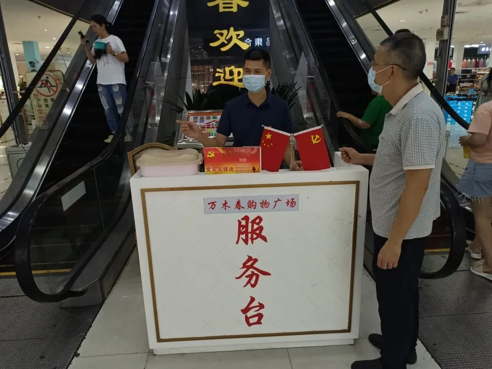 此外,商圈支部还开展党员“三亮”(亮身份、亮职责、亮承诺)活动,要求佩戴党员徽章上岗。为党员门店颁发“党员示范店”标牌,时刻提醒挂牌商户作为一名党员,必须诚信经营,用实际行动维护党员形象。同时,为周边商户做表率,赢得群众信任,营造一个商户用心、群众放心的消费氛围,构建和谐文明商圈。“党员示范店”不仅以传统美德等规范自己的经营,更以党员的先锋模范作用影响其他商铺。 坚持党建引领 提升服务质效 “你好,请佩戴好口罩、测量体温、主动出示场所码。”在万木春商场的各进出口,每天都能看到面带微笑、手握体温枪的支部党员为商场防疫工作而忙碌的身影。